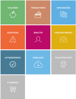 Um zur Startseite zurückzukehren, klicken Sie einfach auf das Zeichen PAYMENTS MERCHANT PORTAL in der oberen linken Ecke oder auf den Pfeil darunter.
